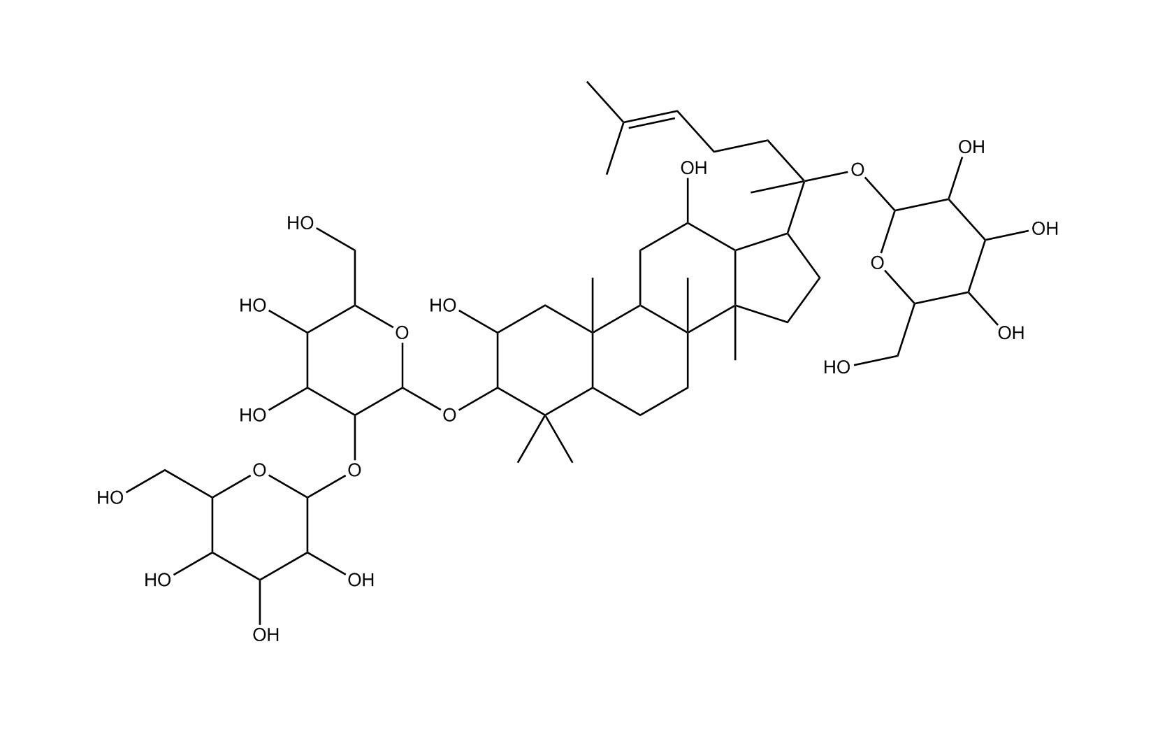 【英文別稱】 (2alpha,3beta,12beta)-20-(beta-D-Glucopyranosyloxy)-2,12-dihydroxydammar-24-en-3-yl 2-O-beta-D-glucopyranosyl-beta-D-glucopyranoside